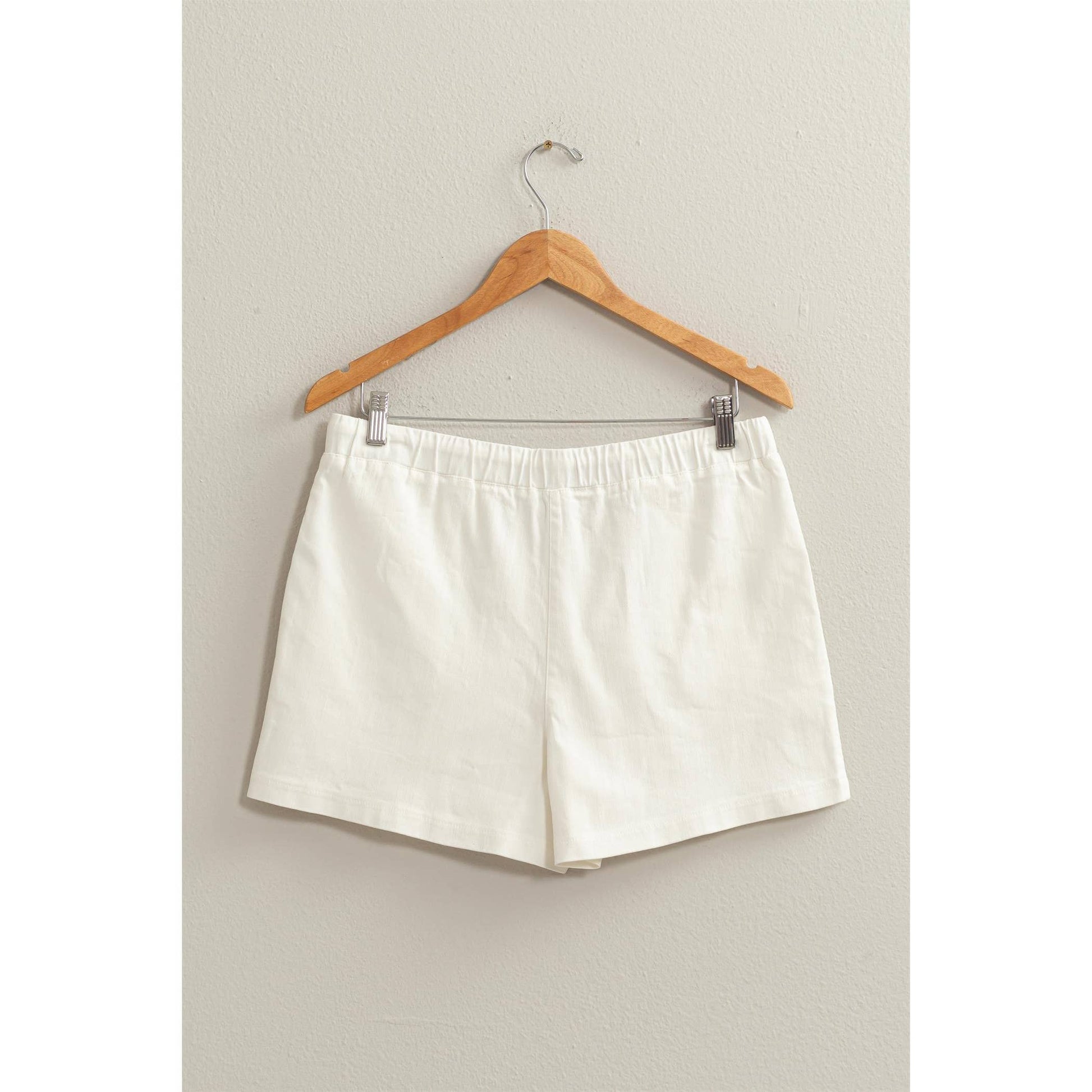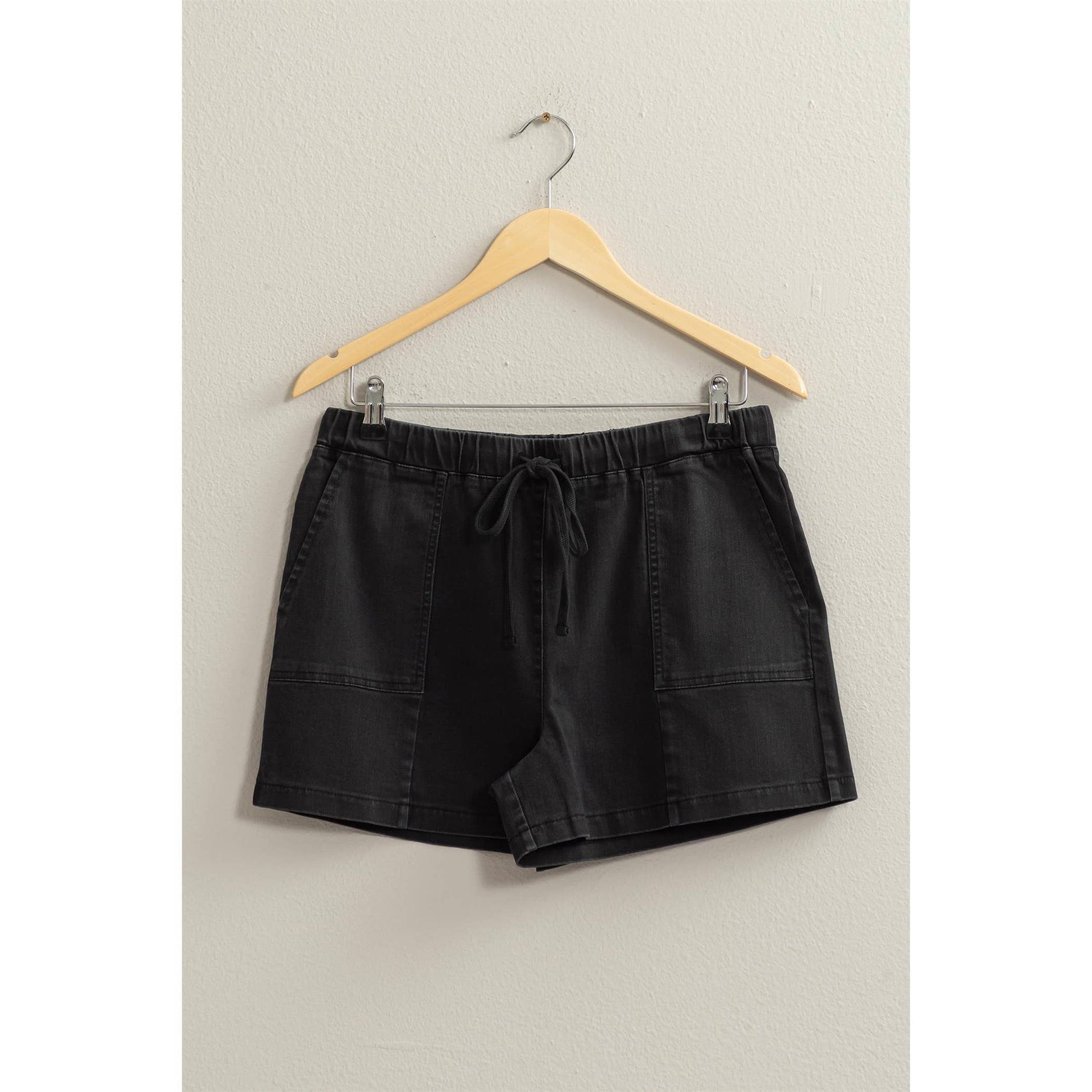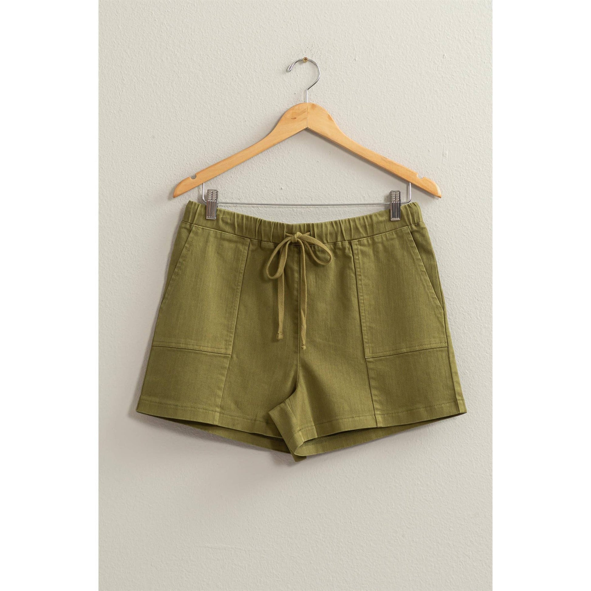 SPEND YOUR SUMMER LOOKING EXTRA CUTE IN THESE SHORTS. THIS PAIR FALLS FROM A FLATTERING HIGH WAIST WITH AN EASY DRAWSTRING CLOSURE INTO A BREEZY DESIGN, ACCENTED WITH CONVENIENT SIDE POCKETS FOR YOU TO KEEP YOUR ESSENTIALS AT HAND. 98% COTTON 2% SPANDEX WEAR WITH/ MOSS: TOP DZ23E153 PINK: TOP DZ24A757 MODEL IS 5' 9" TALL, 32" CHEST, 23" WAIST AND 35" HIPS AND WEARING A SIZE SMALL. DESIGNED IN THE USA