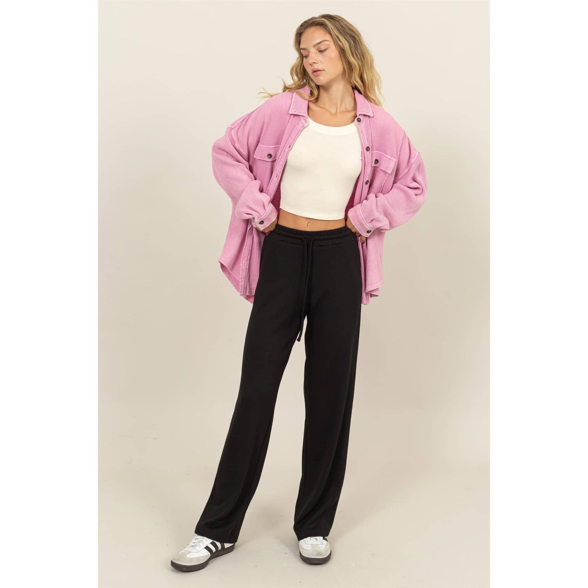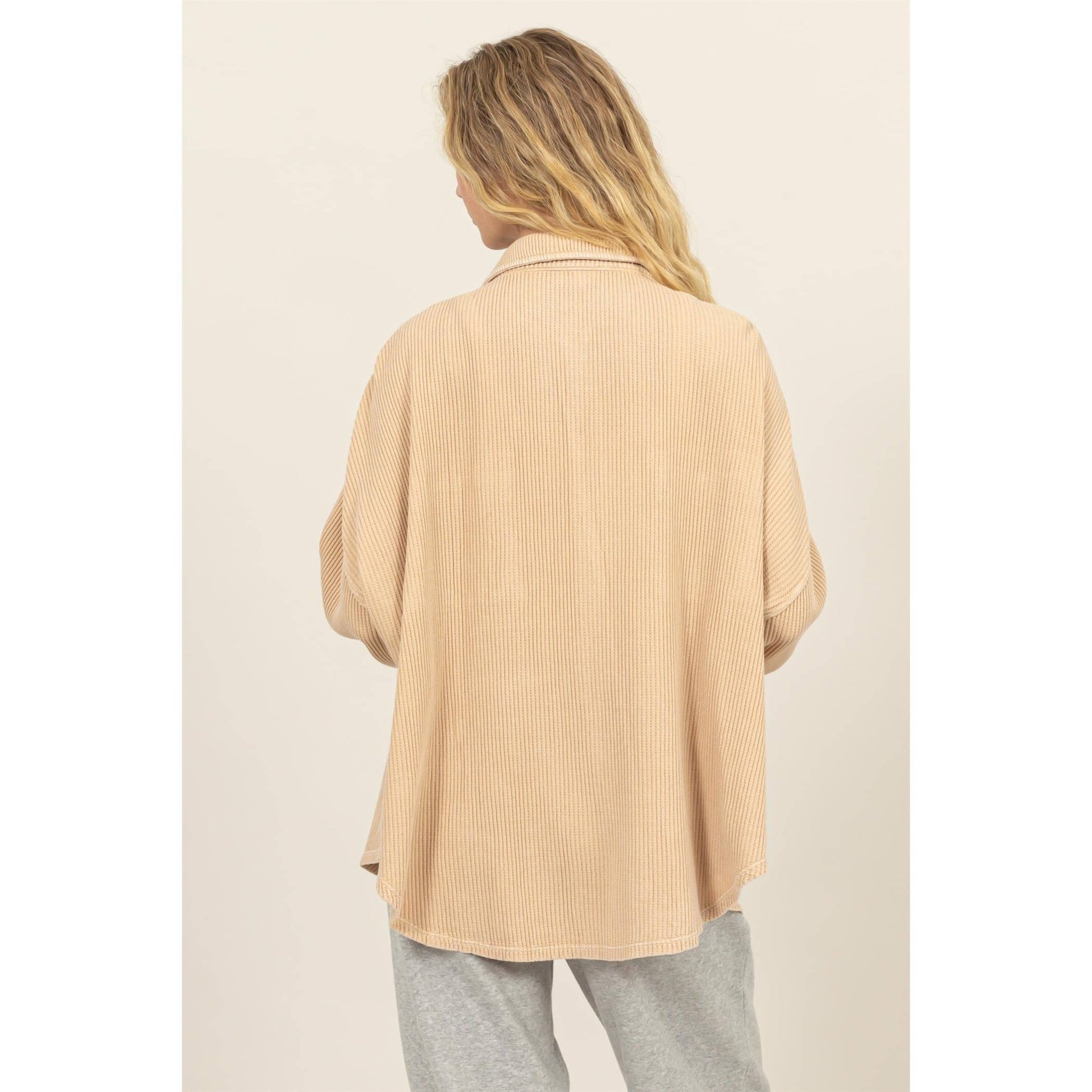 Brushed Waffle Knit Shacket: CREAM / S