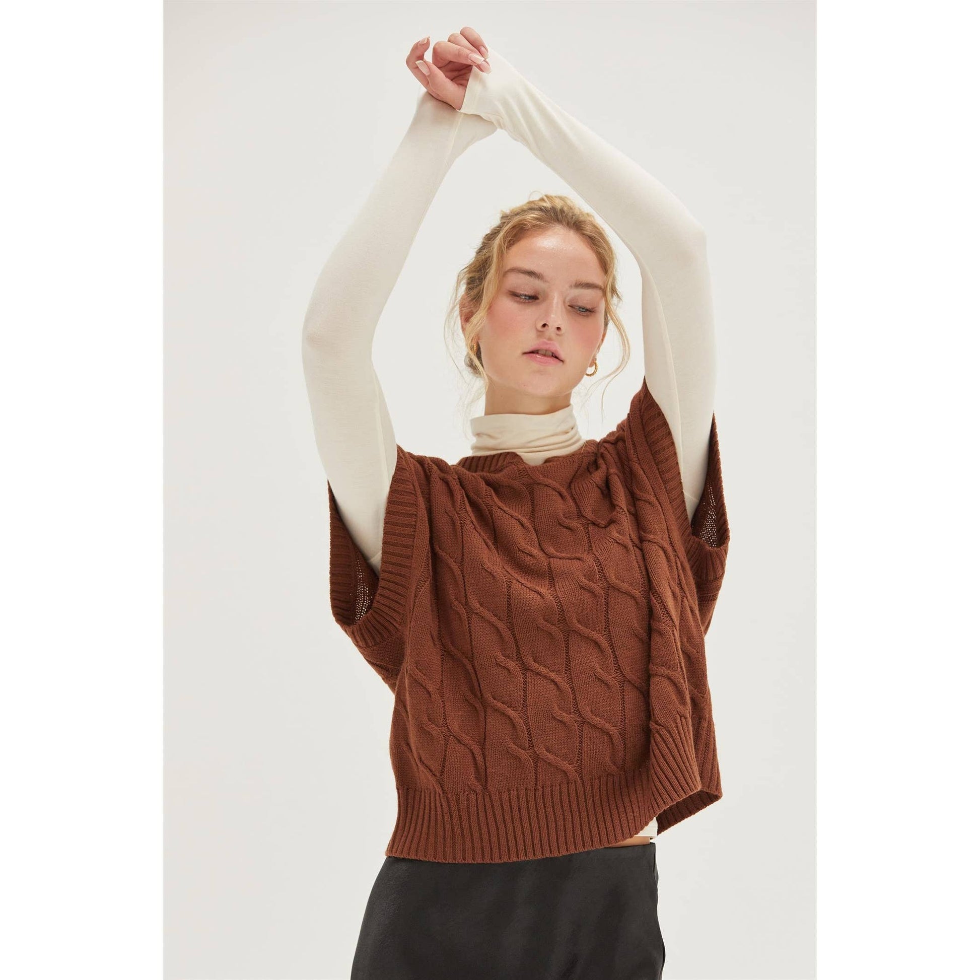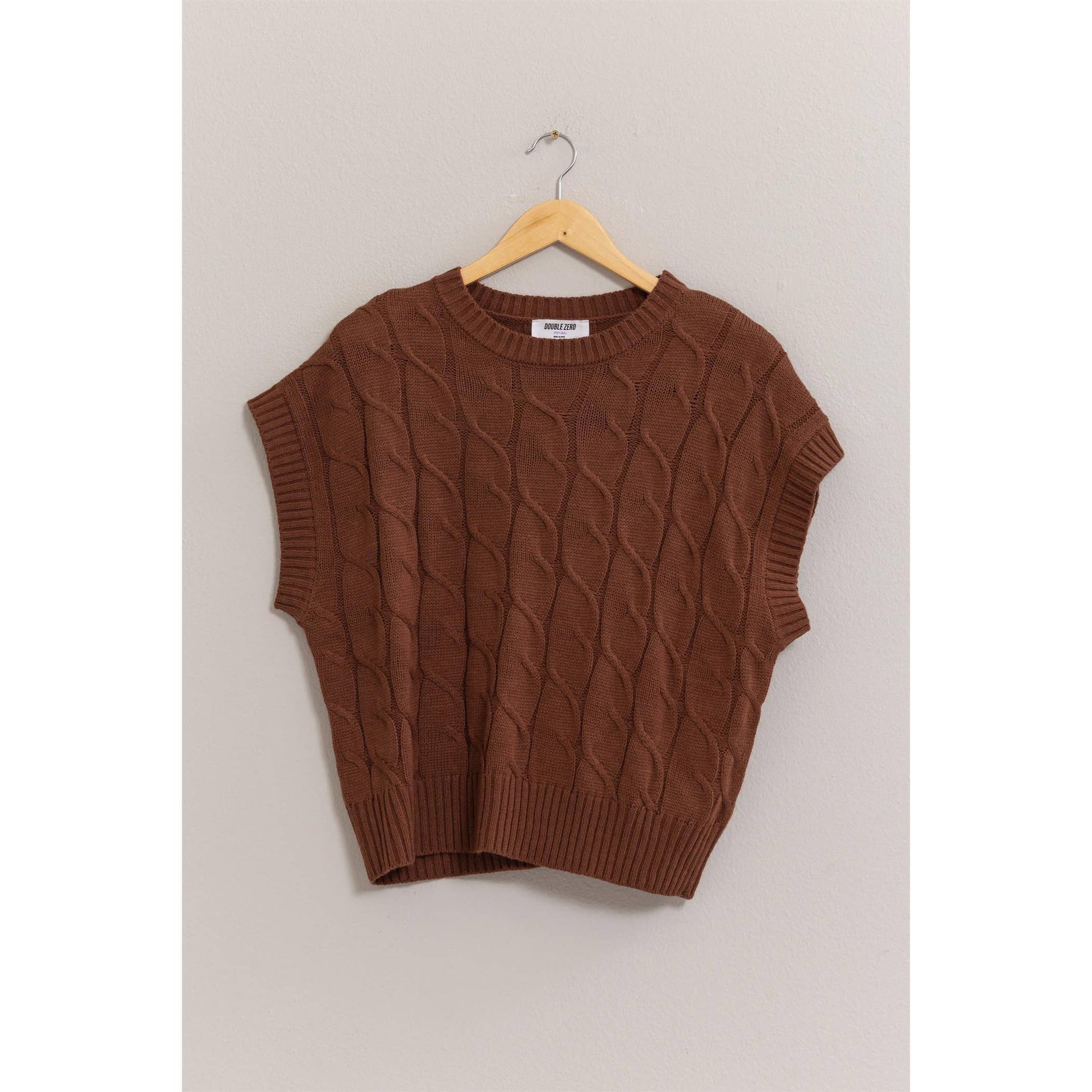 DZ24E945-OVERSIZED CABLE KNIT SWEATER VEST: CHESTNUT / S