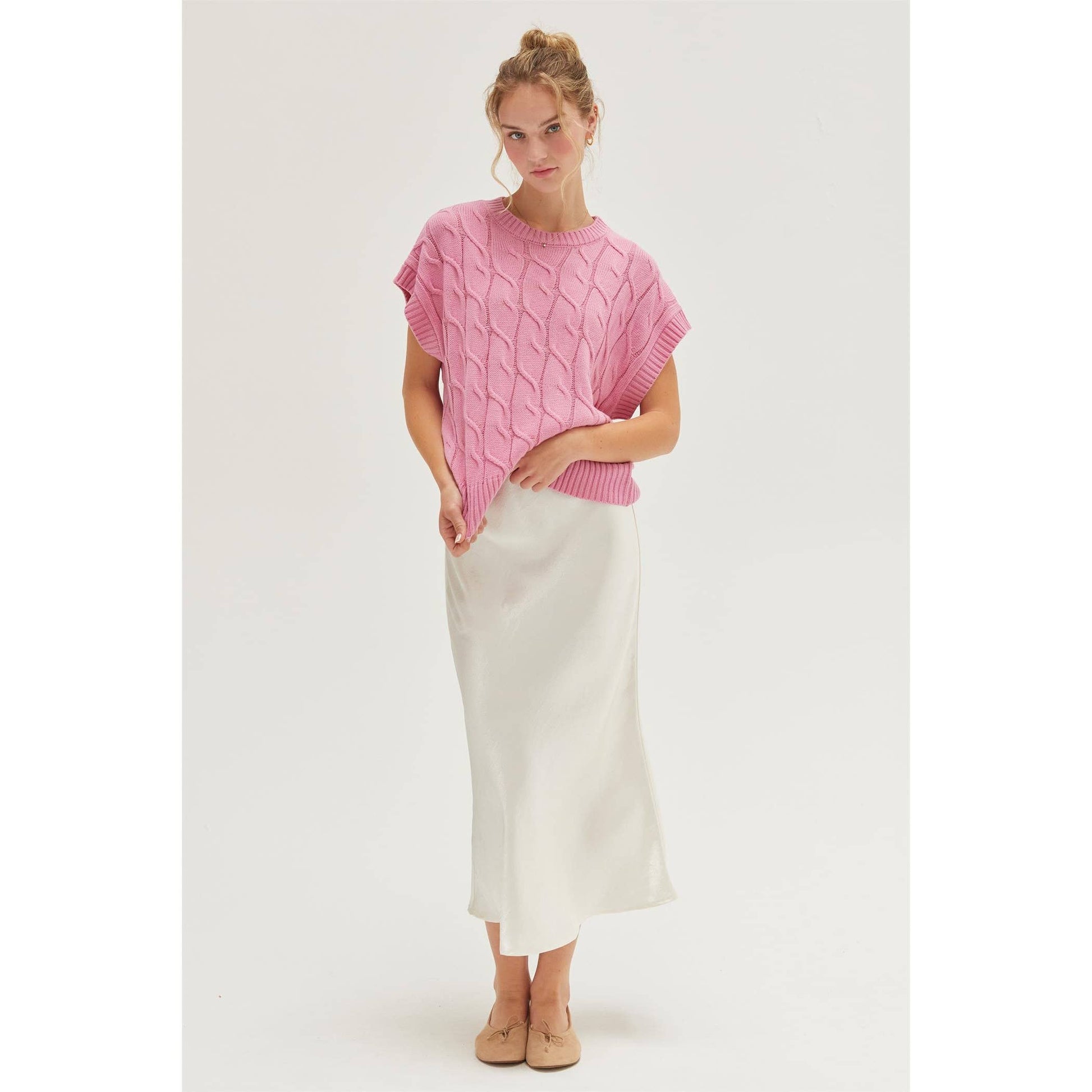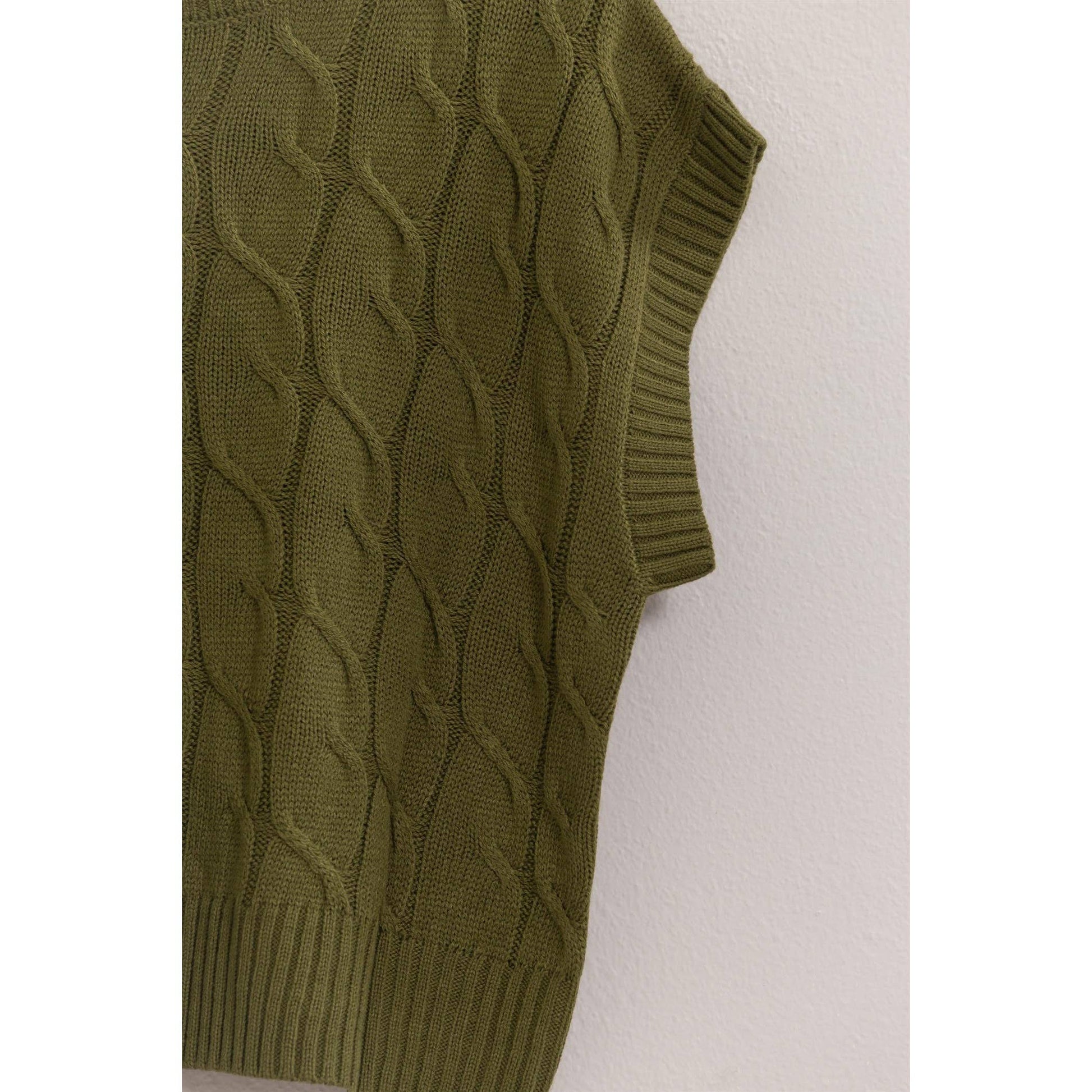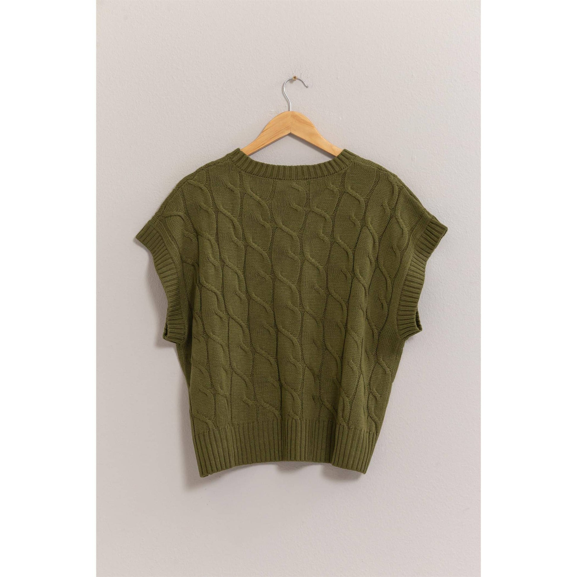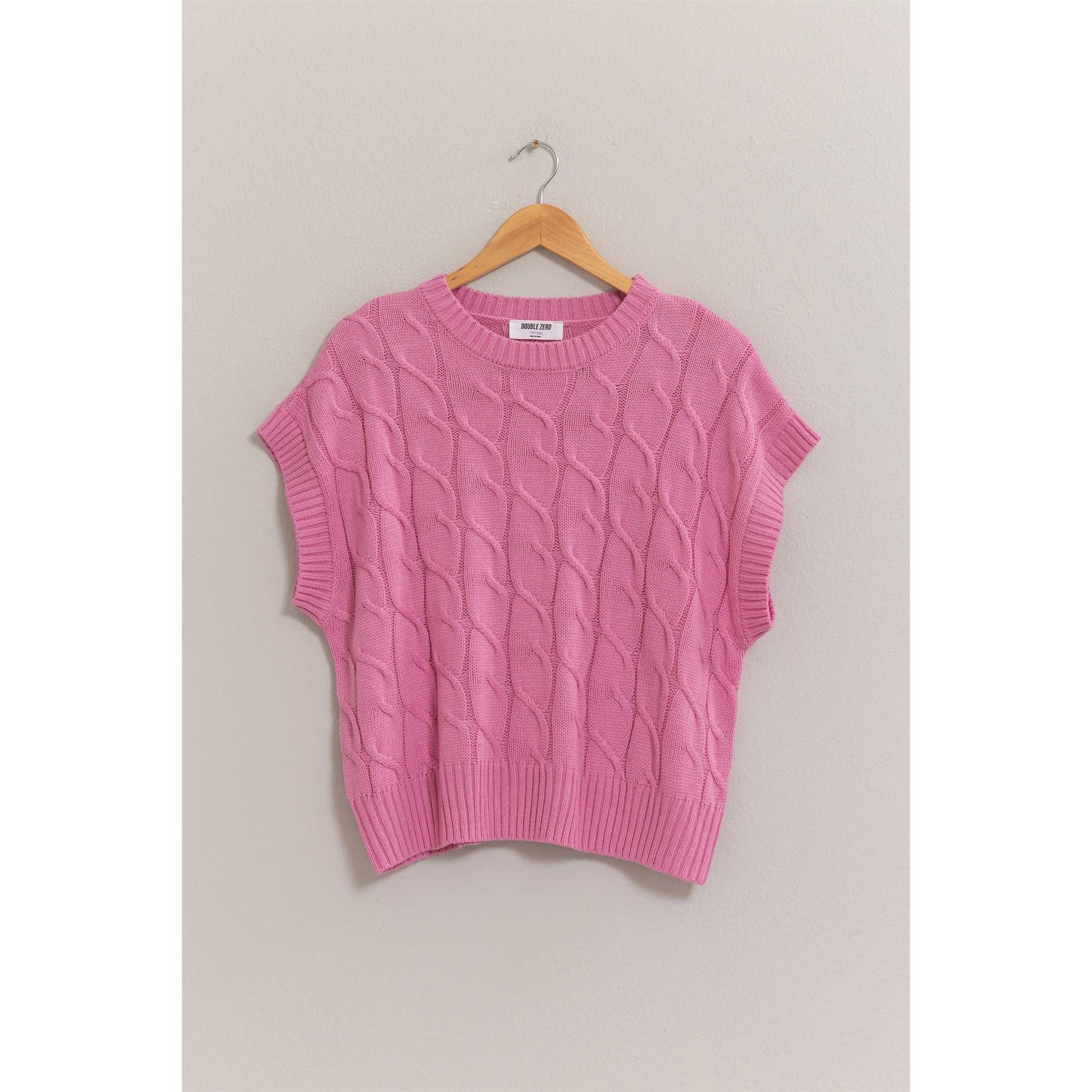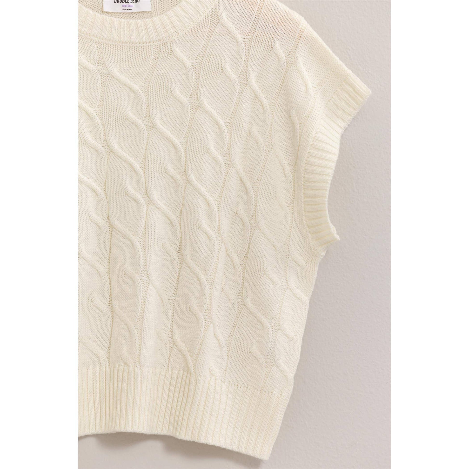 * Style No.: DZ24E945 ELEVATE YOUR LOOK WITH THIS CHIC CABLE KNIT SLEEVELESS SWEATER. FEATURING A CLASSIC CABLE KNIT PATTERN AND A RELAXED, BOXY FIT, THIS SWEATER OFFERS BOTH COMFORT AND STYLE. THE SLEEVELESS DESIGN MAKES IT PERFECT FOR LAYERING OVER LONG-SLEEVE SHIRTS OR WEARING ALONE ON WARMER DAYS. PAIR IT WITH YOUR FAVORITE JEANS OR A SKIRT FOR A TRENDY, VERSATILE OUTFIT. 100% ACRYLIC MODEL IS 5' 9" TALL, 32" CHEST, 23" WAIST AND 35" HIPS AND WEARING A SIZE SMALLĀ