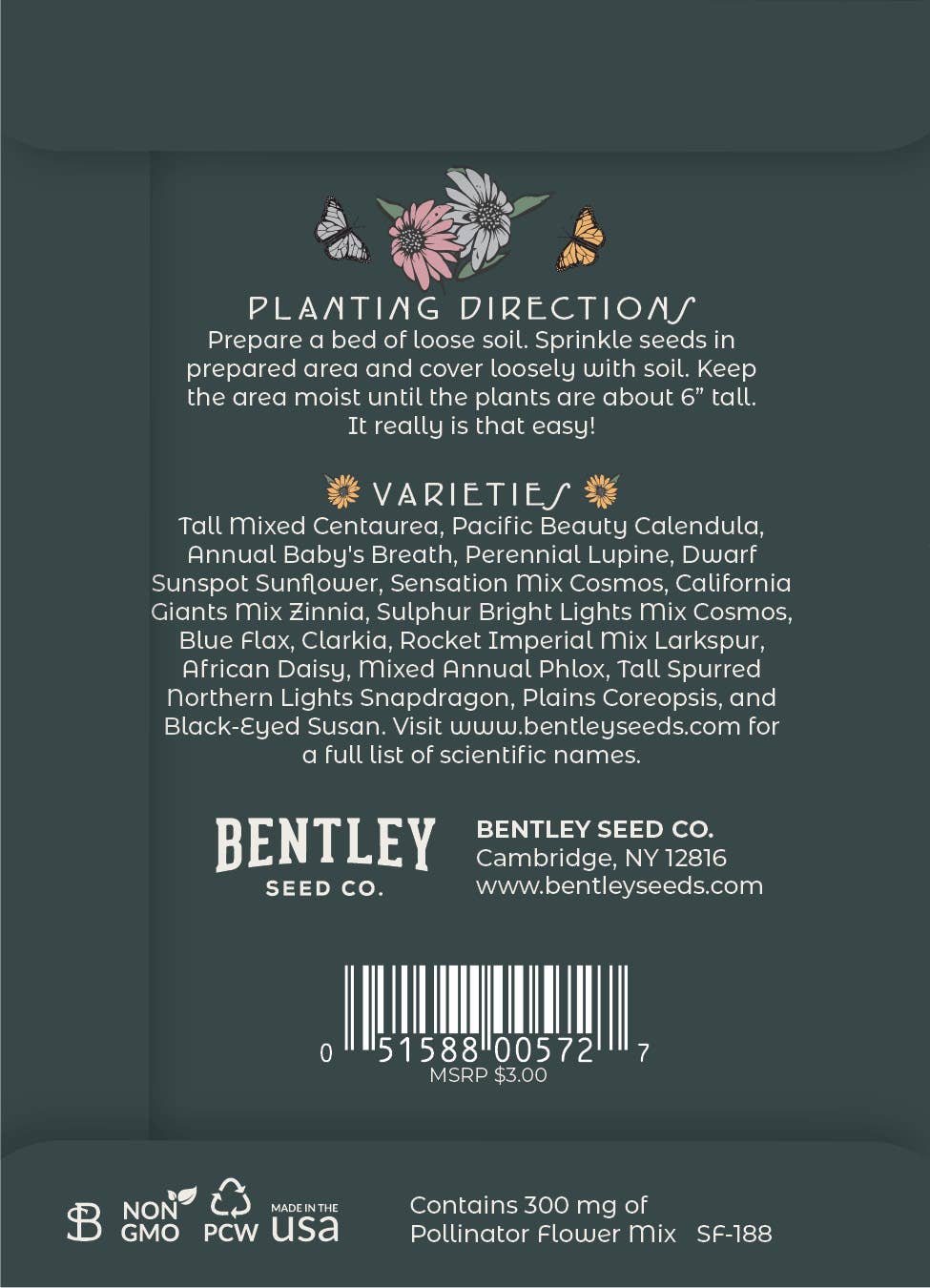 Be a gracious garden host and grow good things for the pollinators essential to our ecosystem. This specially crafted seed mix attracts and nourishes butterflies, bees, birds and other native pollinators while providing them with shade, shelter and habitat. Share the love and use these pretty packets as a favor for all your special events!
