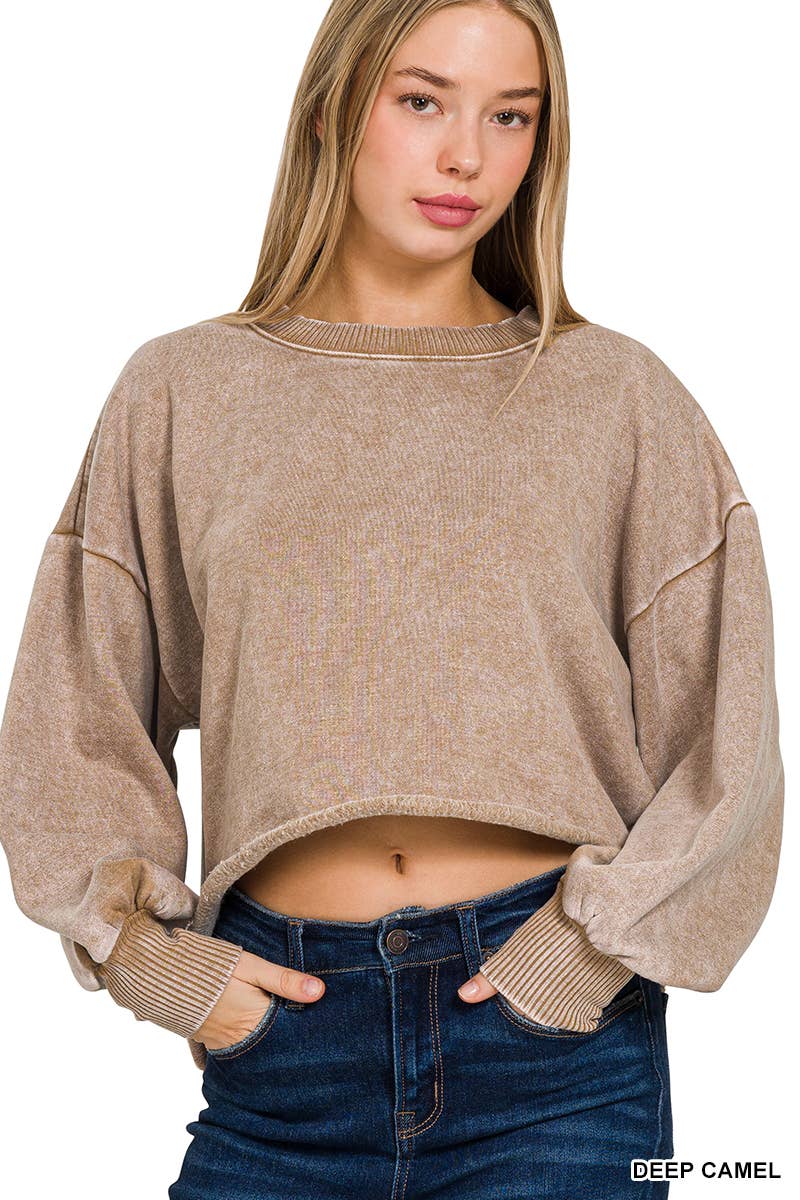 SI-25409 ACID WASH FLEECE CROPPED PULLOVER
