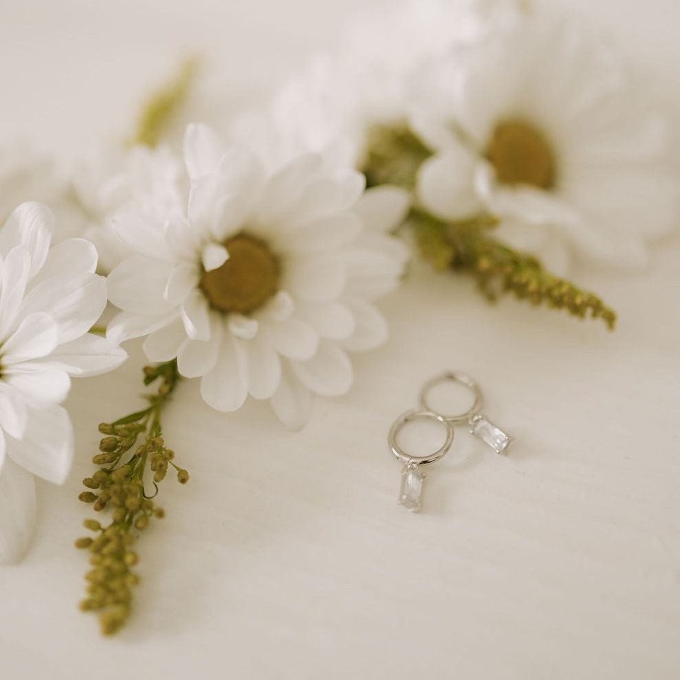 The Sophie Baguette Diamond Dangle Hoops are the perfect accessory for any outfit. Available in high quality sterling silver and gold vermeil, these huggies are hypoallergenic, good for sensitive skin, and wear and tarnish resistant. Diamond is made of high quality cubic zirconia. Outer diameter is 9mm.